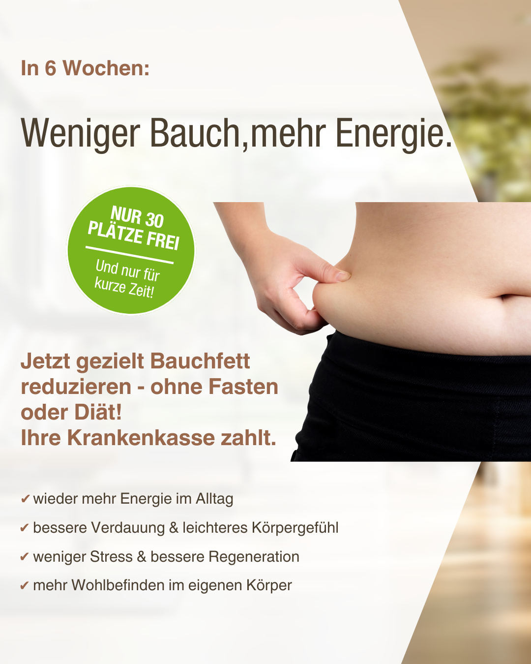 weitere InfosDiäten gibt es wie Sand am Meer und sicher haben Sie schon genügend ausprobiert. Hungergefühle, Stress und am Ende war das Ergebnis nicht so, wie Sie es sich vorgestellt haben? Wir zeigen Ihnen, wie Sie ohne zu hungern und leicht in den Alltag integrierbar, Kilos verlieren und Ihr Gewicht auch halten. Ihr auf Sie angepasster Ernährungsplan (ein Unikatbuch) versorgt Ihren Körper optimal mit Allem, was er braucht – ohne Verbote und Verzicht. Dabei berücksichtigen wir Ihre Vorlieben, Abneigungen, Allergien, Tagesabläufe und Kochzeiten. Damit Sie wieder fitter und leistungsfähiger werden, besser schlafen und sich einfach wieder in Ihrem Körper wohl und attraktiv fühlen. Und das Beste daran – die gesetzlichen Krankenkassen bezuschussen Sie dabei!